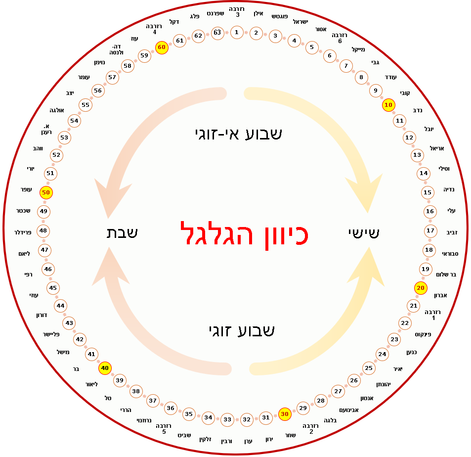 2) בכדי לדעת את מיקומך בתור, יש לקחת את העיגול עם המחוג המופיע למטה, לכוון את המחוג לטייס הראשון, וכל מי שמופיע עם סיבוב השעון בשישי - בא אחריו (בשבת נגד השעון).